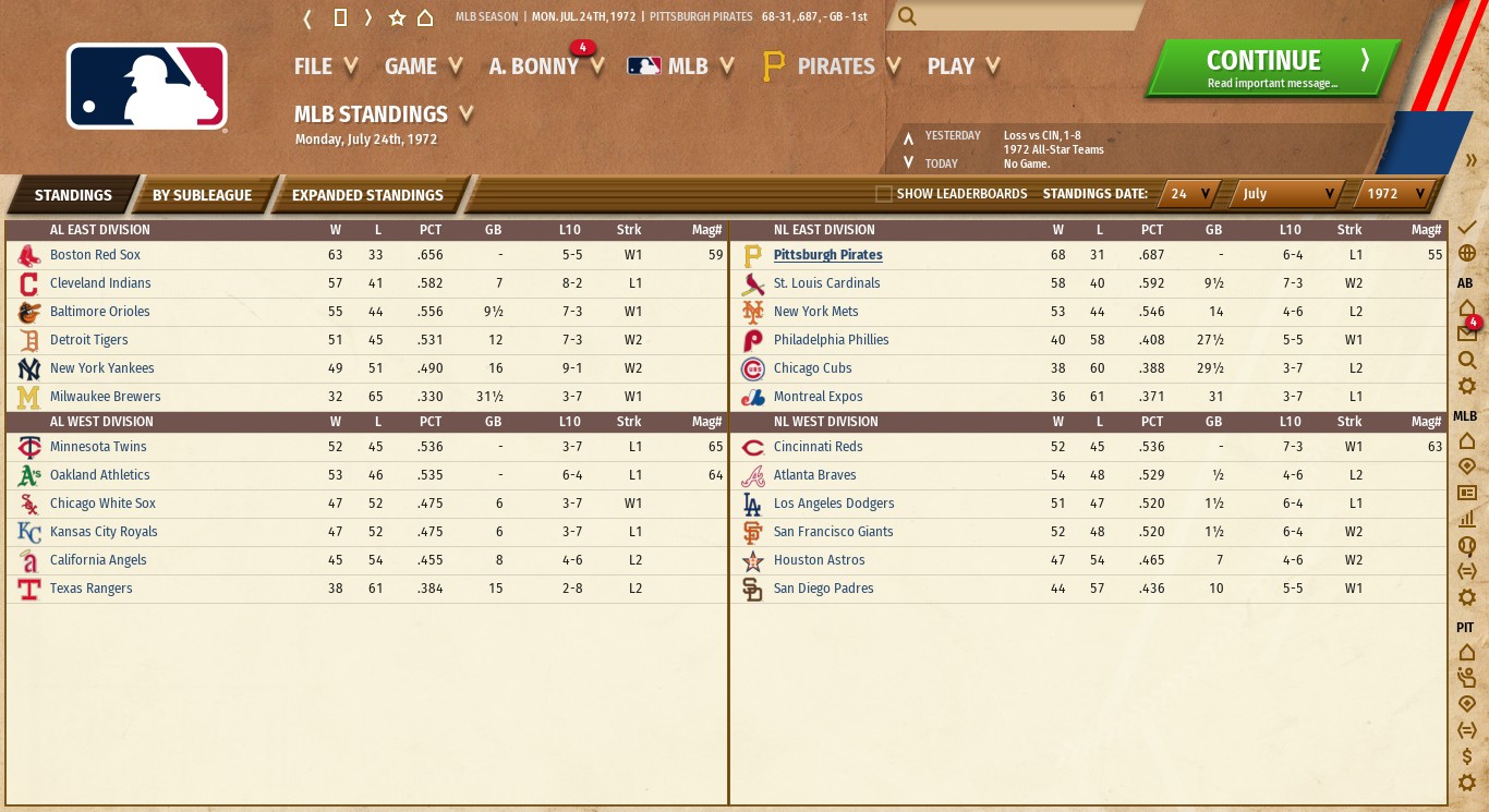 I'm not playing out the games but I over ruled the AI manager to start Woodie Fryman in game 4. |