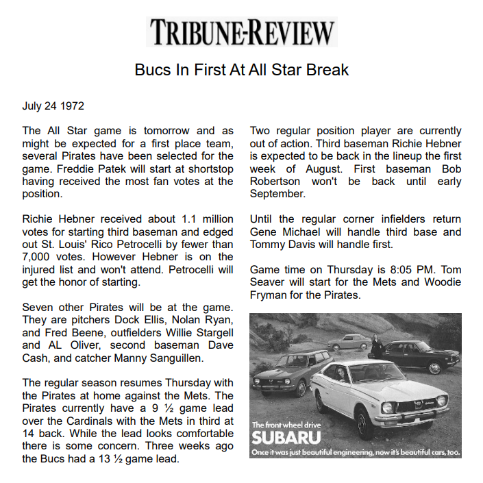 I think I can keep winning or at least stay in contention for a few years. The next round of rookies that will break into the lineup includes Dave Parker and Stennett who has already played a bit. A few years after that the top prospects are reasonably good players like Tony Armas but not stars.