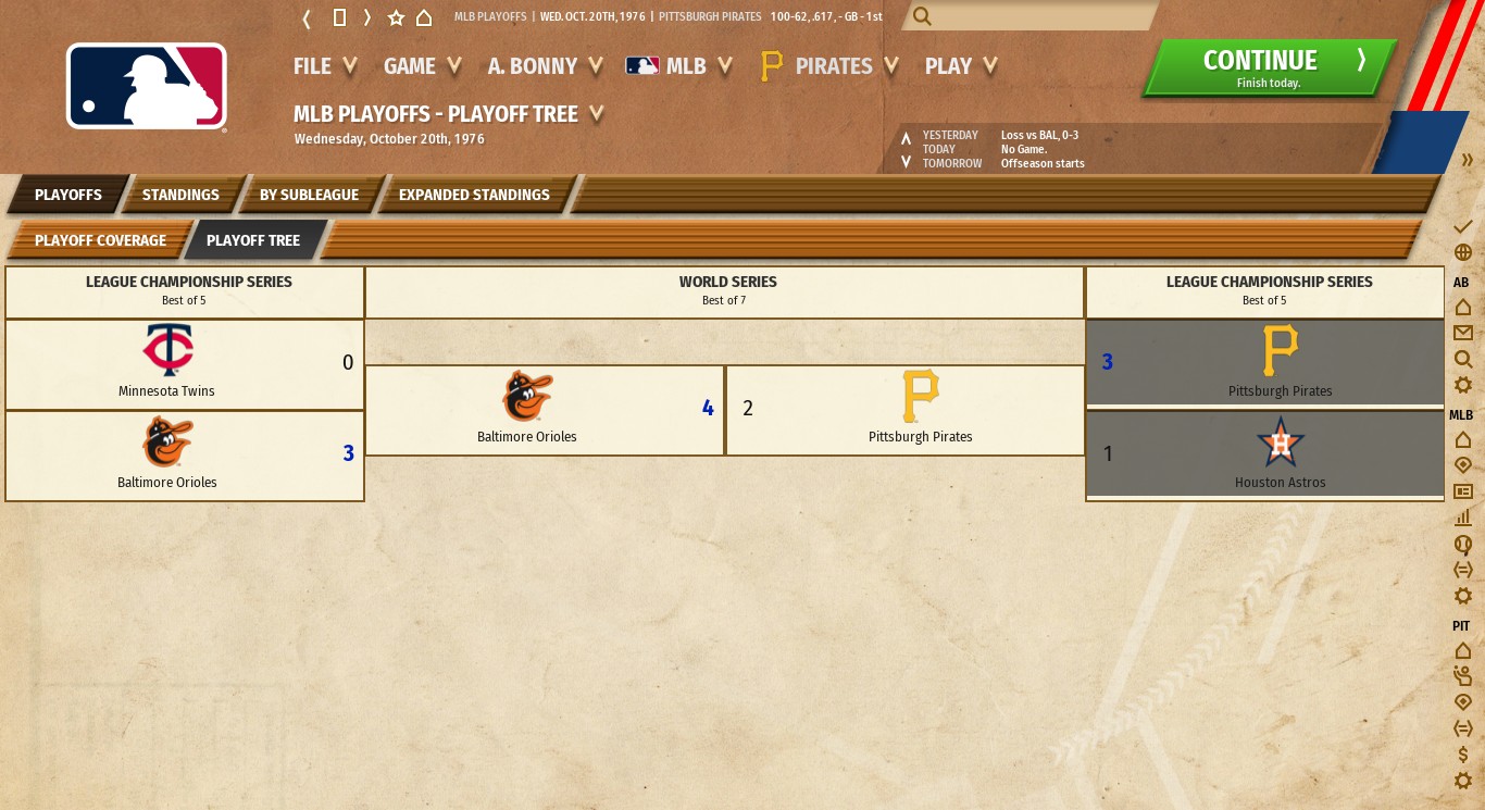 Yea, the Mets were quite troublesome for a while. If I can win the East this year I'll have tied the historical Pirates for East wins in the 70s