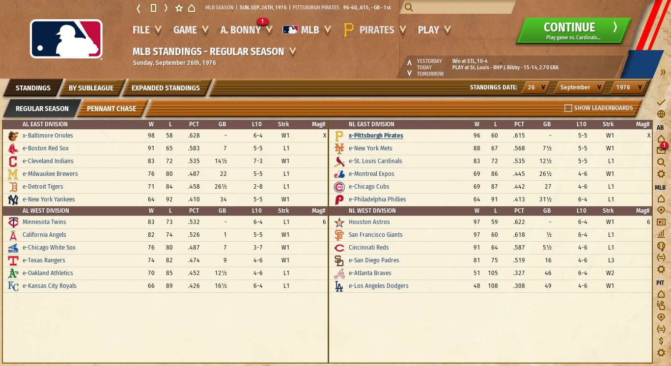 Yea, the Mets were quite troublesome for a while. If I can win the East this year I'll have tied the historical Pirates for East wins in the 70s