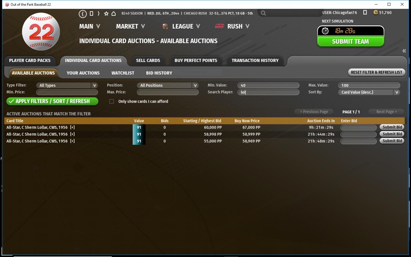 The more money i make, the more the price for Lollar keeps increasing. When I had less then $10,000, the price for him was around $41,000. Then around $45 k then $47. I have a 97 Grandal but i want Lollar to replace a 73 Contreras..