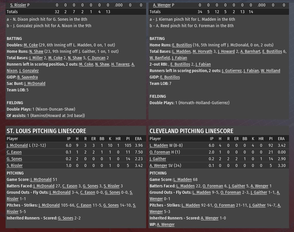 Luke Madden pitched shut out for the opening six innings, and the Cleveland bullpen held St. Louis scoreless until the ninth in a 5-2 Juke Box Heroes victory at Cleveland Stadium (1980).