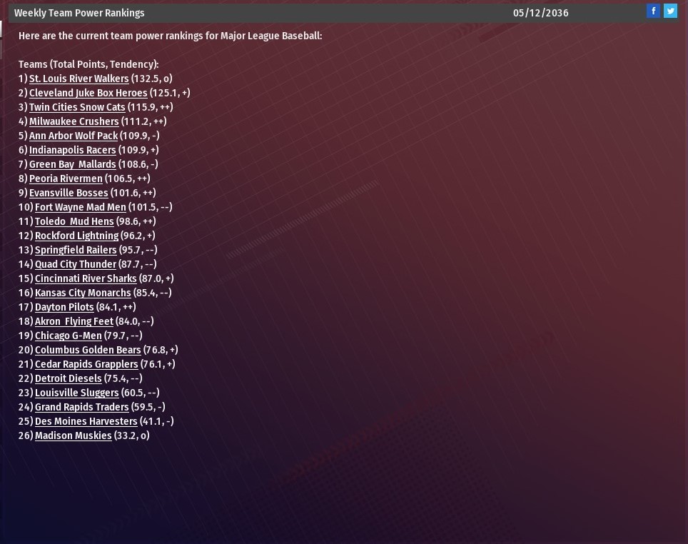 Camacho replaces Kenji Johjima, who had held the position since the 2033 season. Speculation is the move was made due to the defensive struggles of the team’s infielders in the early part of the 2036 season. Johjima, 58, had taken on those duties following the retirement of bench coach Buddy Carlyle after the 2035 season. Camacho spent the 2033 through 2035 season as the first base coach for the Toledo Mud Hens. Last edited by rink23; 10-22-2021 at 03:24 AM. |