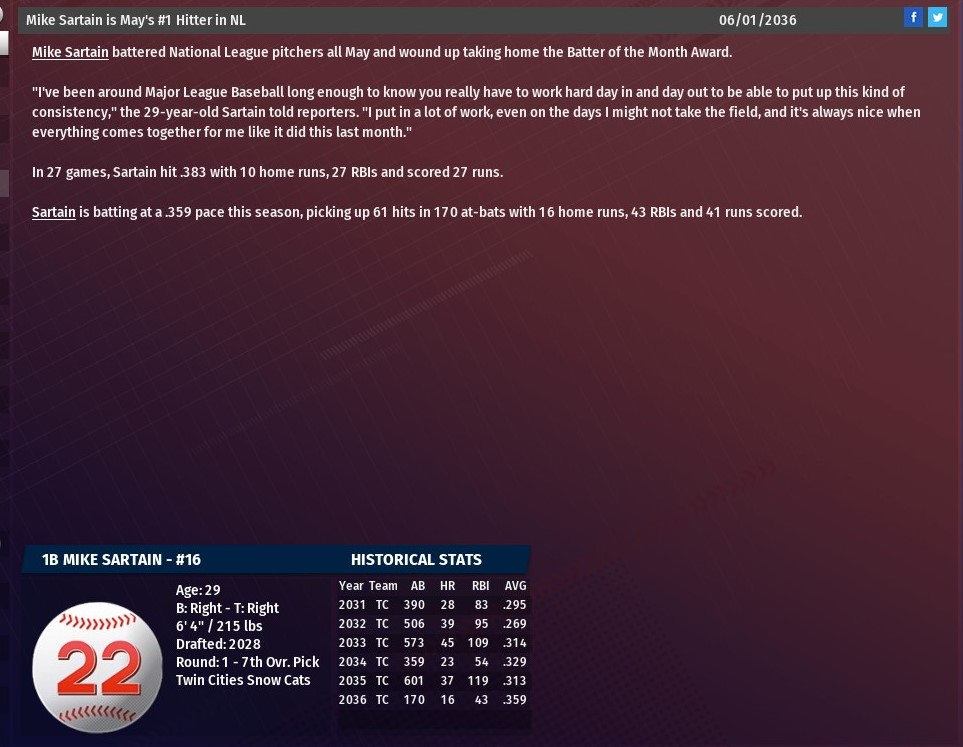 MBL news: June 1 -- Players and Pitchers of the Month for May