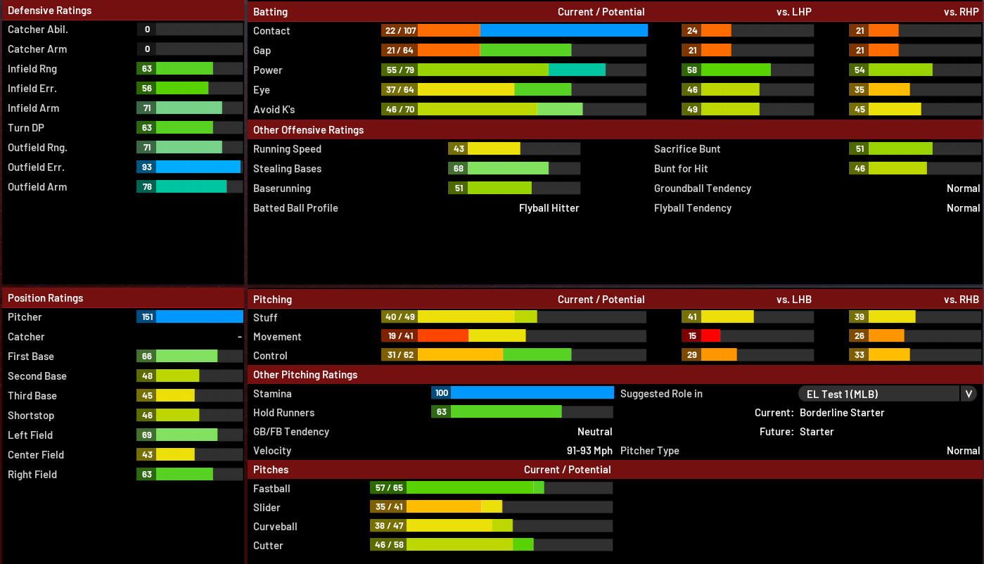 I ignored his early incarnation as a pitcher altogether, as I did for a number of other players with similar IRL career paths, unless their pitching period was useful in the game. I also gave him quite the slow burn trajectory.