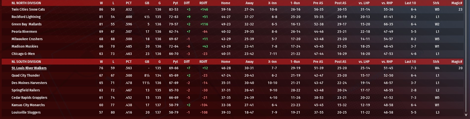Tied 3-3, Milwaukee scored a pair of runs in the bottom of the fifth inning and went on to defeat St. Louis 5-4 at Miller Park (2020). The win gave the Crushers wins in final two games of the three-game series. The game had been tied 3-3 win since the River Walkers scored a pair of runs off Milwaukee starting pitcher Tony Lujano in the top of the fourth. Nick Shaw provided the first run with a solo homer. Rookie Wen He, making his major league debut, later doubled and scored on a two-out single by Abdul-Nasser bin Amr. Andy Burhoe got the Crushers rolling in the bottom of the fifth against St. Louis starter Xavier Wigfall with a lead-off double. He scored on a one-out single by Alvaro Lovato. Corey Flowe followed with another single, putting runners on the corners. Lovato scored when Ryan Edwards hit into a fielder's choice. Eddie Estrella led off the sixth with a homer off Lujano to pull St. Louis to within a run. That, however, would be the end of the scoring for the Walkers. Lujano (10-10) allowed four runs on seven hits in 5-2 innings but still earned the win. He struck out four and didn't walk a batter. Ed Sutherland completed the sixth inning for Milwaukee. David McLoughlin, Jason Pappas and Dave Araya all pitched scoreless innings in relief. Araya upped his save total to 13. |
