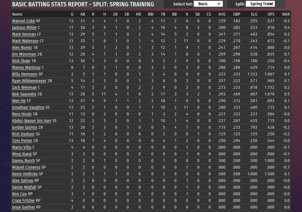 Walkers news: March 21 -- Team spring training statistics after three weeks