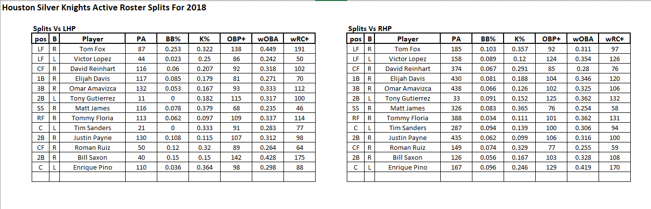 Before you start, export the schedule for your team's league from the OOTP game. Make a note of, and copy, the location. Enter the name of your database Once you're connected to the database, you'll choose your team's league by entering the league id... Then choose your team's id Paste the location of the schedule file when prompted The Gameday Workbooks show the selected team's next 7 days worth of games- shows the starter, your active roster's lifetime stats against that starter and his bullpen. The last tab shows some advanced stats splits for your active roster for the current year. An Excel workbook with the name format team name_mm_dd_YYYY-mm_dd_YYYY.xlsx will be created in the output subdirectory.