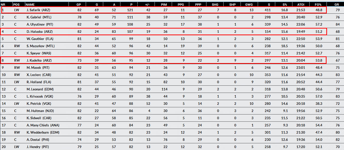 And another 60-goals season for Safarik. This time Arizona trio occupied top 3 of scoring race. |