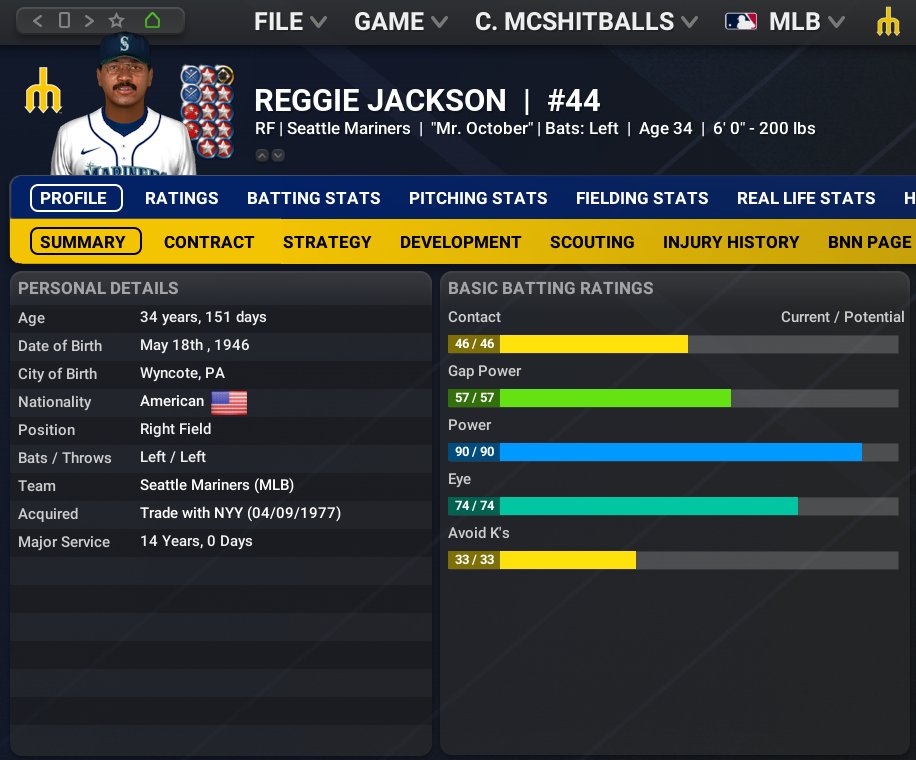 For reference, I've attached screenshots of what I'm talking about. The Jay Bell screenshot is from perfect team, while Reggie Jackson is from my Historical replay. It's a pain to have to click Ratings to see Splits all the time. I would like it to show by default like it does in Perfect Team.