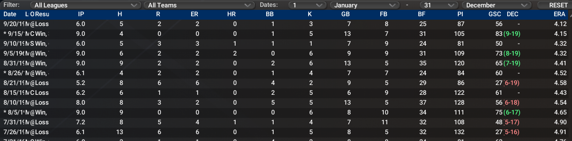My team had a terrible season, and our intended ace started the season 1-11. He lost his 19th game in August with 32 games to play, but then spent his last six starts dodging that horrible 20th loss that would have forever tainted his career record.