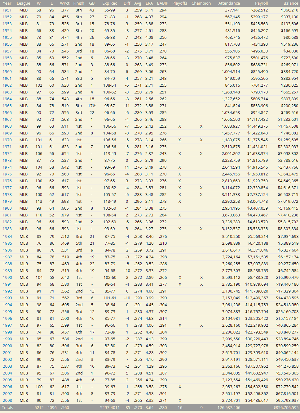 Seven 1st place finishes in the 70s is not out of line. Historically the Pirates finished first six times in the decade. Last edited by Brad K; 04-22-2023 at 07:44 AM. |