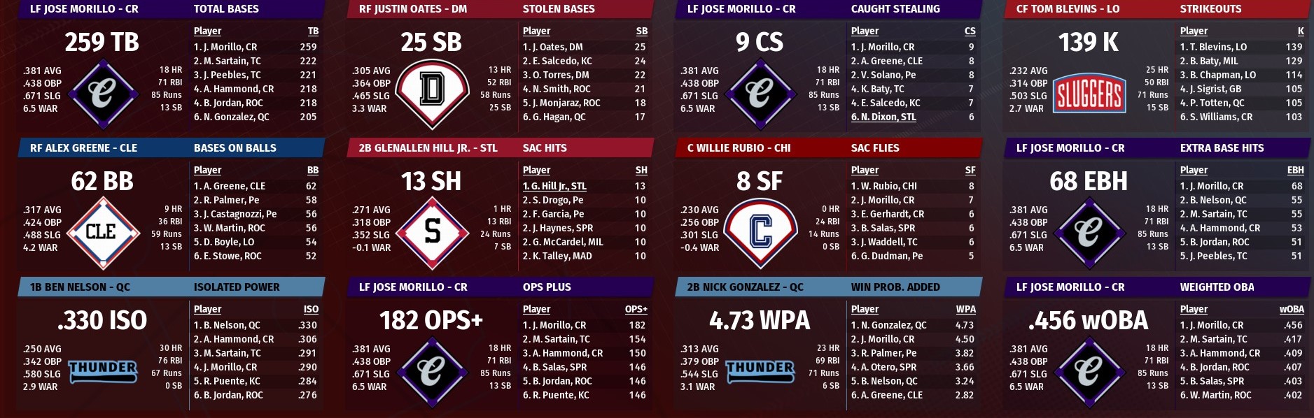 MBL news: August 1 -- Team statistics for July
