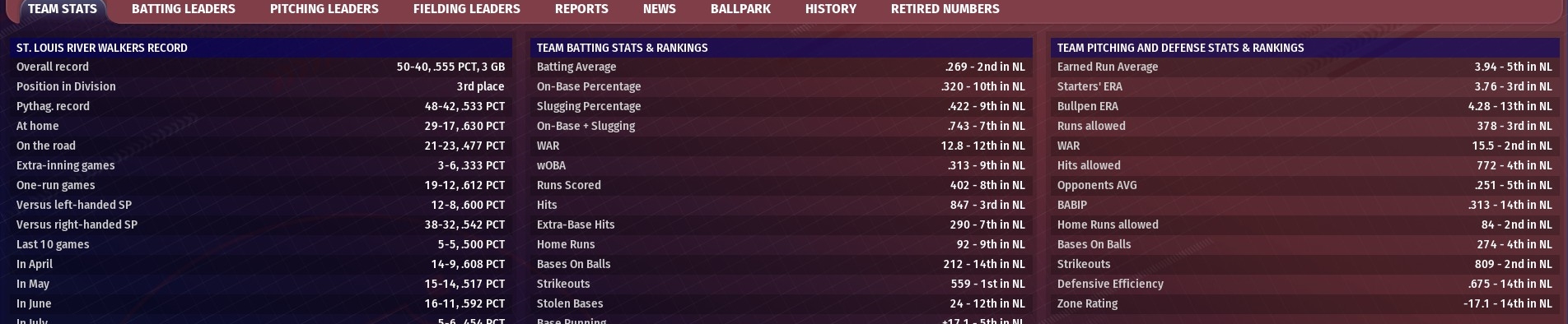 Walkers news: July 19 -- Team statistics at All-Star break