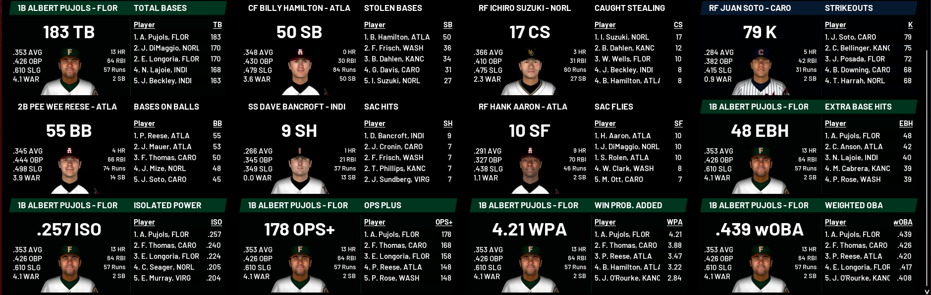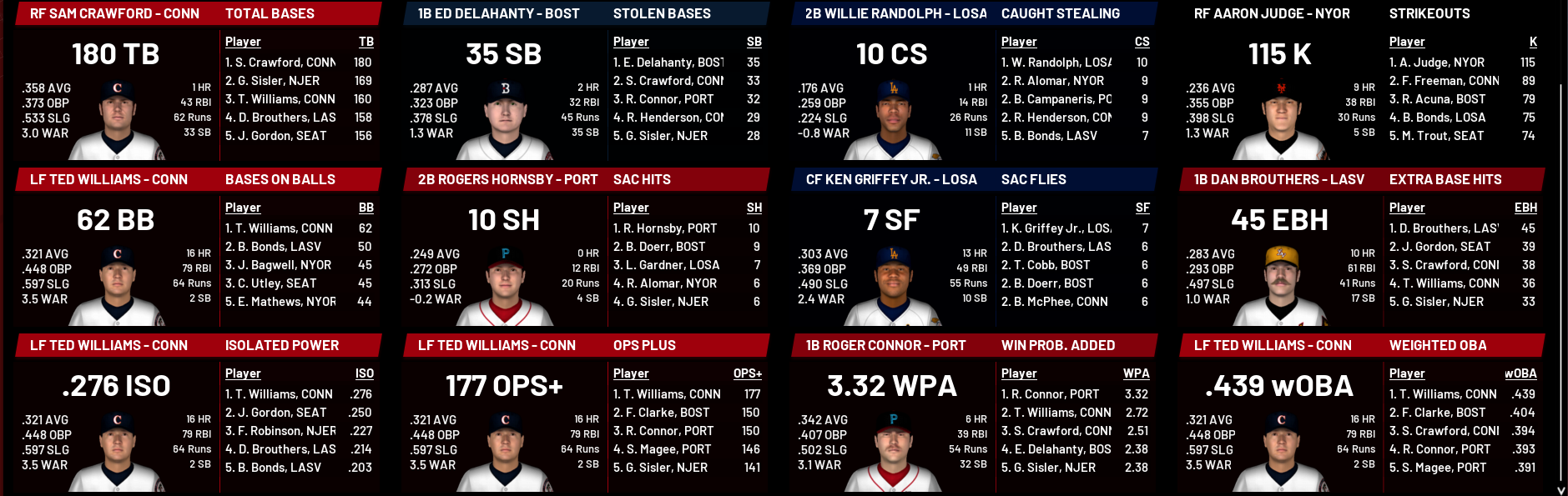 Northwest League Ty Cobb (Boston): .583 / 1 HR / 10 RBI Southeast League Billy Hamilton (Atlanta): .480 / 0 HR / 4 RBI