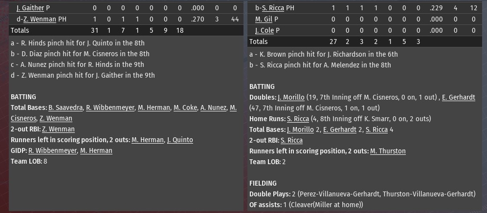 The major-league debut of St. Louis starting pitcher Billy Herman was an ugly one as Cedar Rapids pounded him for seven runs in the first two innings of an 11-2 win at Connie Mack Stadium (1960). The victory completed a doubleheader sweep for the Grapplers. Cedar Rapids wasted no time going to work against Herman as four of its five batters delivered hits. David Henderson opened the game with back-to-back single. After a fly out, Dane Finch made it 1-0 with the third single of the inning. Santos Villanueva followed with a double to make it 3-0. An inning later, the Grapplers put three straight runners on base after a lead-off fly out -- pitcher Joel Glenn singled, Henderson drew a walk and Jose Morillo reached on an error by shortstop Rece Hinds -- to load the bases. Eric Gerhardt drove in the inning's first run with a fly ball to right. Dane Finch did the rest with a three-run homer. The River Walkers did climb to within 7-2 with a pair of runs in the top of the third. Glenn left the game after walking the bases loaded. Reliever Trevor Wortham was on the mound when the runs scored. But that was all the offense St. Louis would muster. The Grapplers, meanwhile, would get two-run homers later in the game from Gerhardt (in the fourth off Brett McVey) and Villanueva (in the eighth off Kyle Smarr) to turn it into a rout. Glenn lasted just 2.1 innings, allowing two runs on one hits. He struck out two but walked four. Worthman (5-1) earned the win after working two innings. Elji Konno (2.2 IP), Jordyn Ibarra (1.1) and Anton Melendez (0.2) combined to shut out the Walkers the rest of the way. |