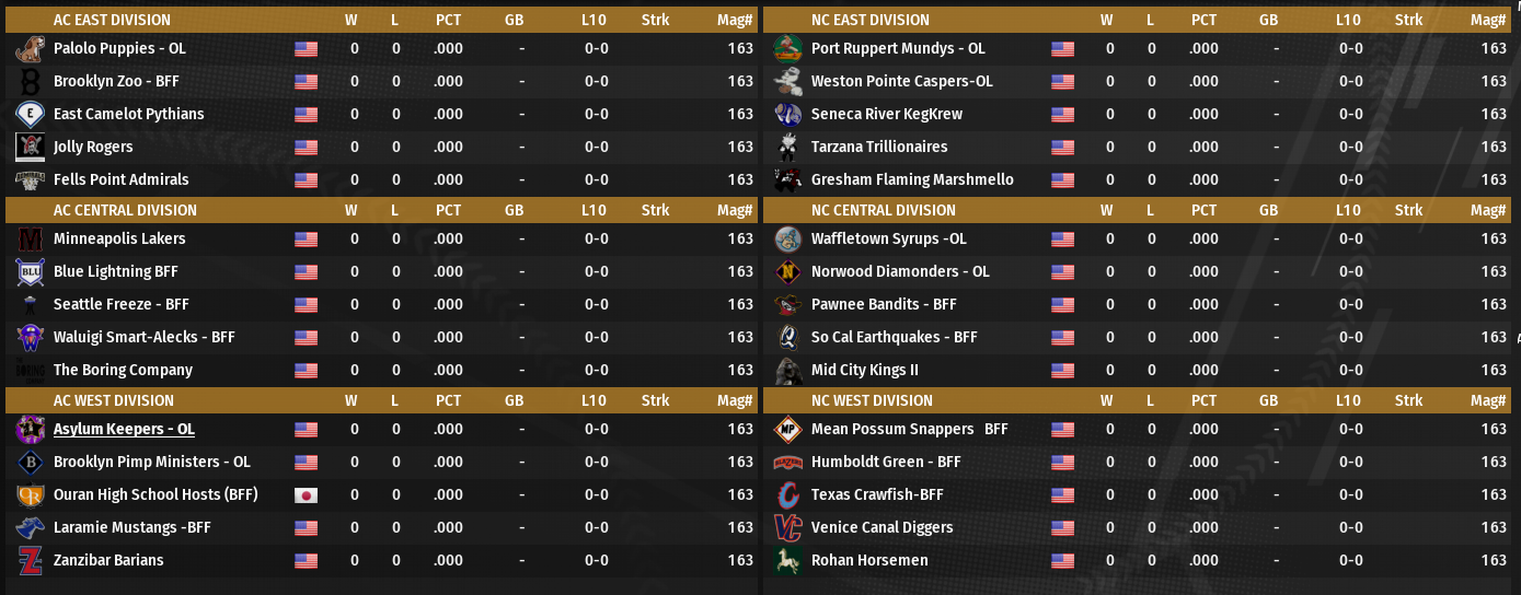 As I do when time permits I did a quick scan of the schedules and everyone is in the running this. I was concerned about Ring Roads division placement, but they got 19 games.