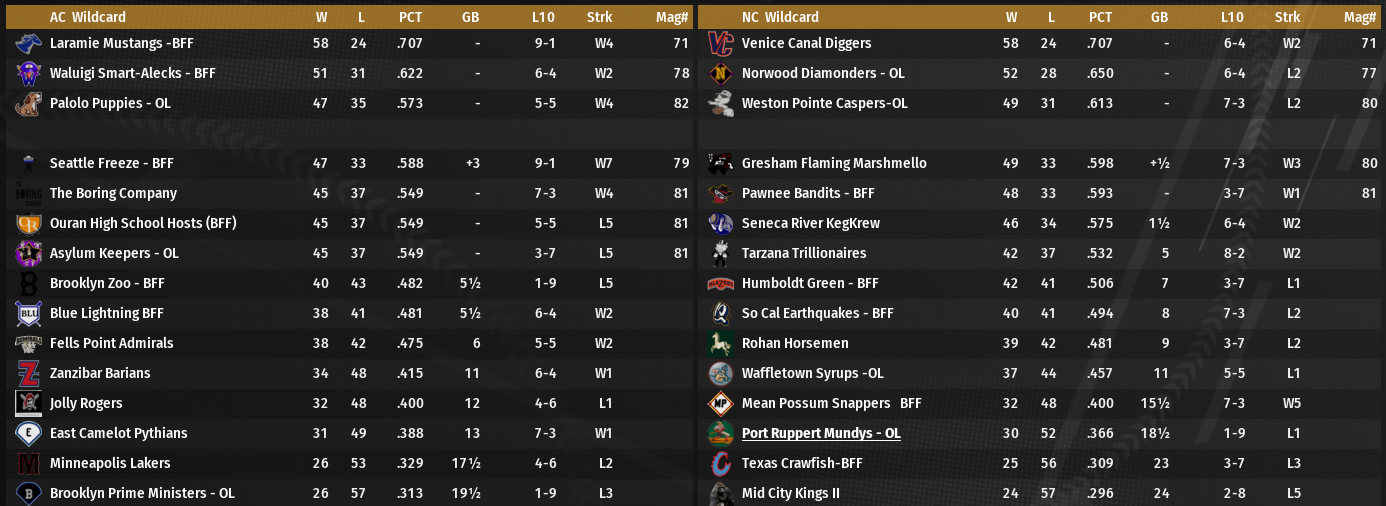 The Atom Smashers kept up their torrid pace to post a wide lead in the early going. Both team who have yet to debut will get busy this month and both are scheduled in the neighborhood of 20 games.