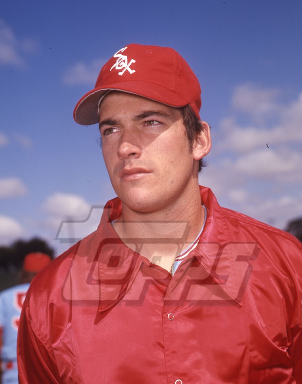 Two games, two innings, one chance as a catcher for the Royals. Topps got him in camp with the Cubs in 1978 or 1979. The generic light blue helmet makes him ideal for anybody who wants to fake a KC image or photoshop one.