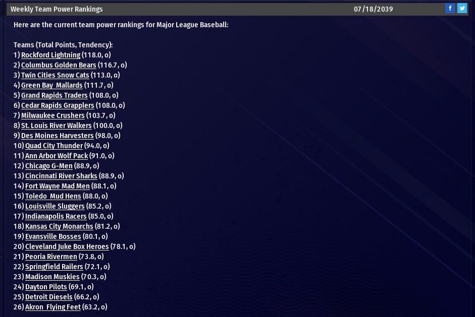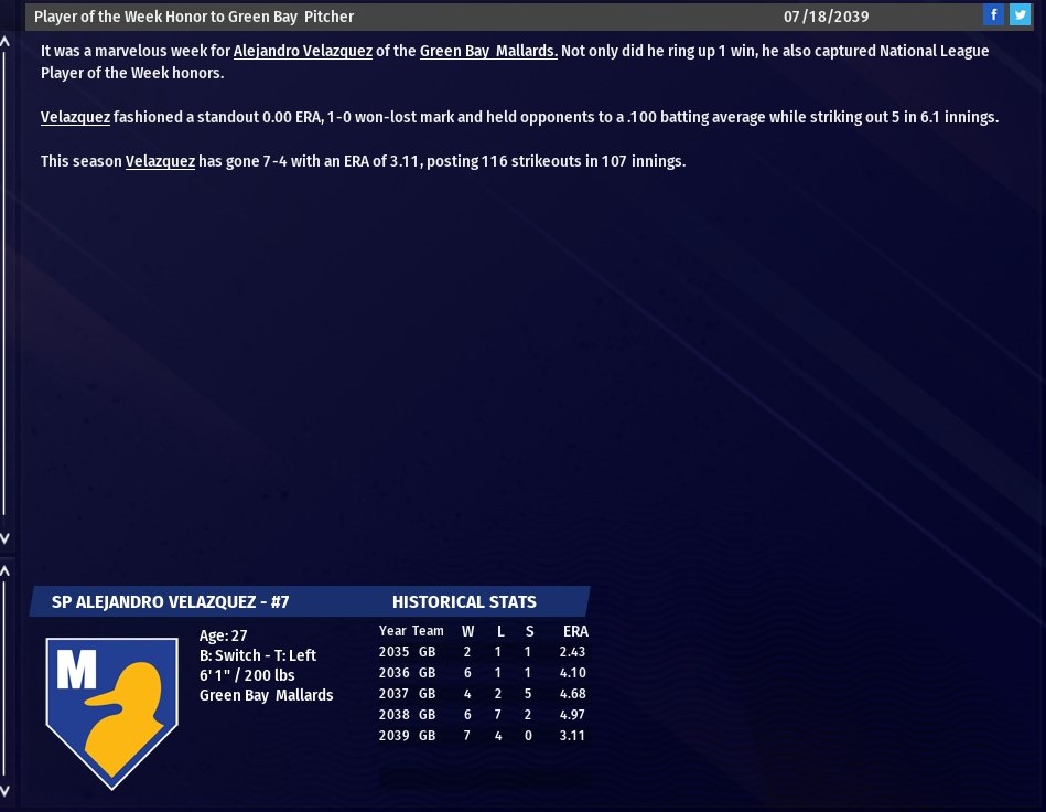 MBL news: July 25 -- Week 16 -- Awards and standings