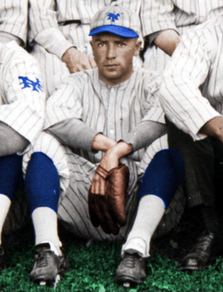 Lore Verne "King" Bader colorized with the New York Giants from an image shared by Baseball Birthdays