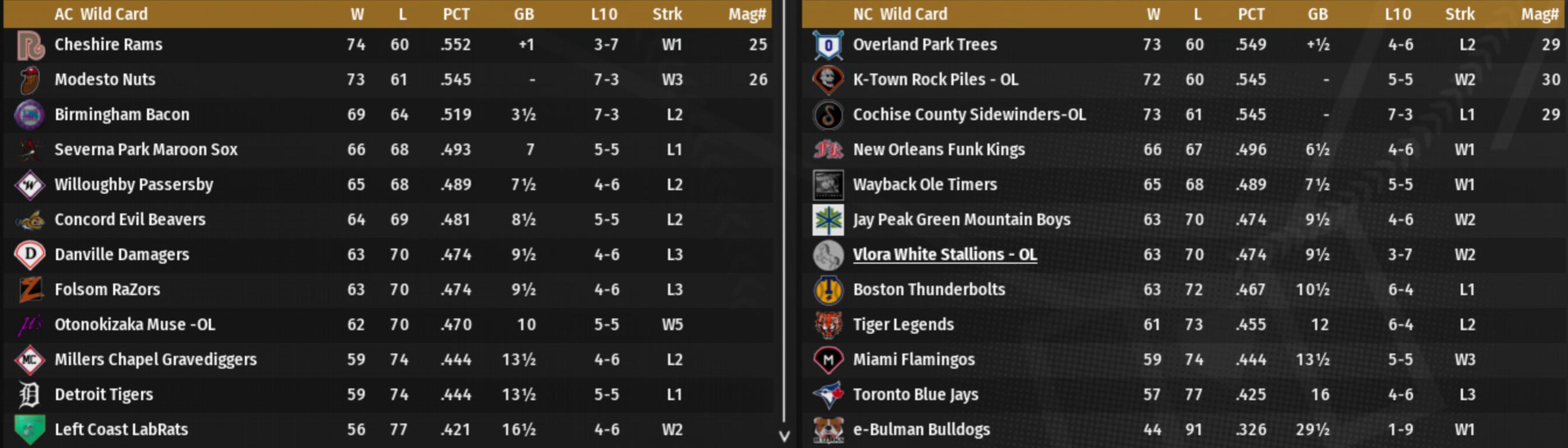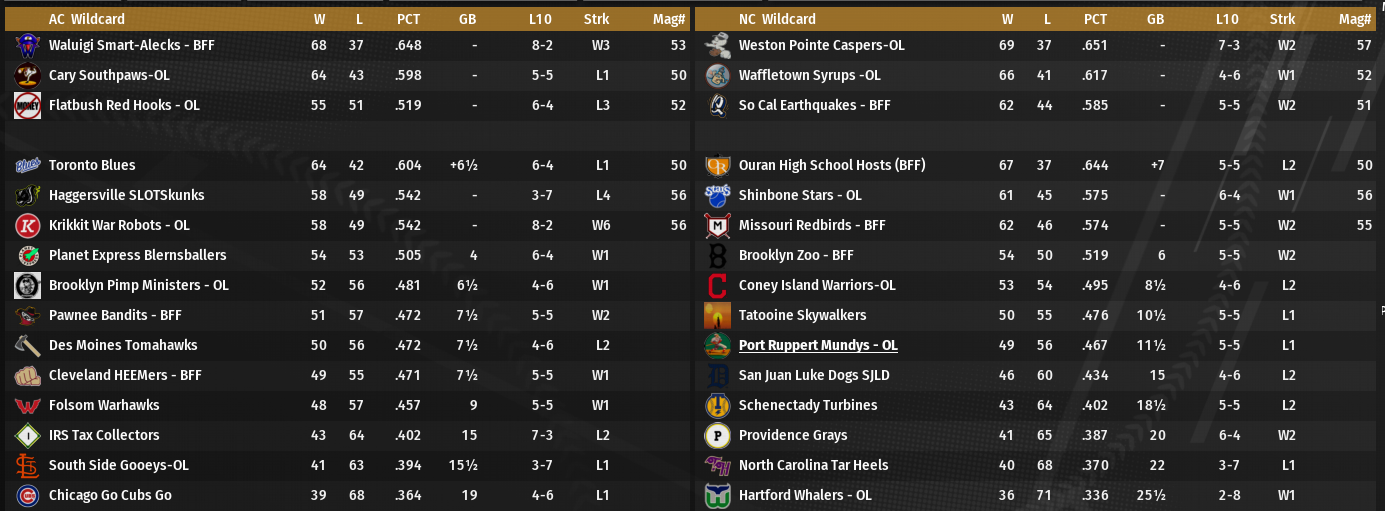 Several OL teams look to be representing OL in the playoffs, including the Rams. Their magic number is 6 heading into the final day of play. No teams will be relegated at this point. |