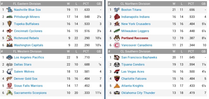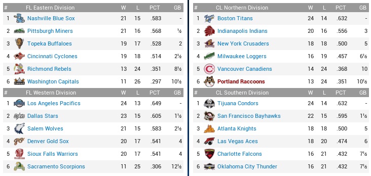 Raccoons (7-11) @ Aces (10-9) – April 27-29, 2032