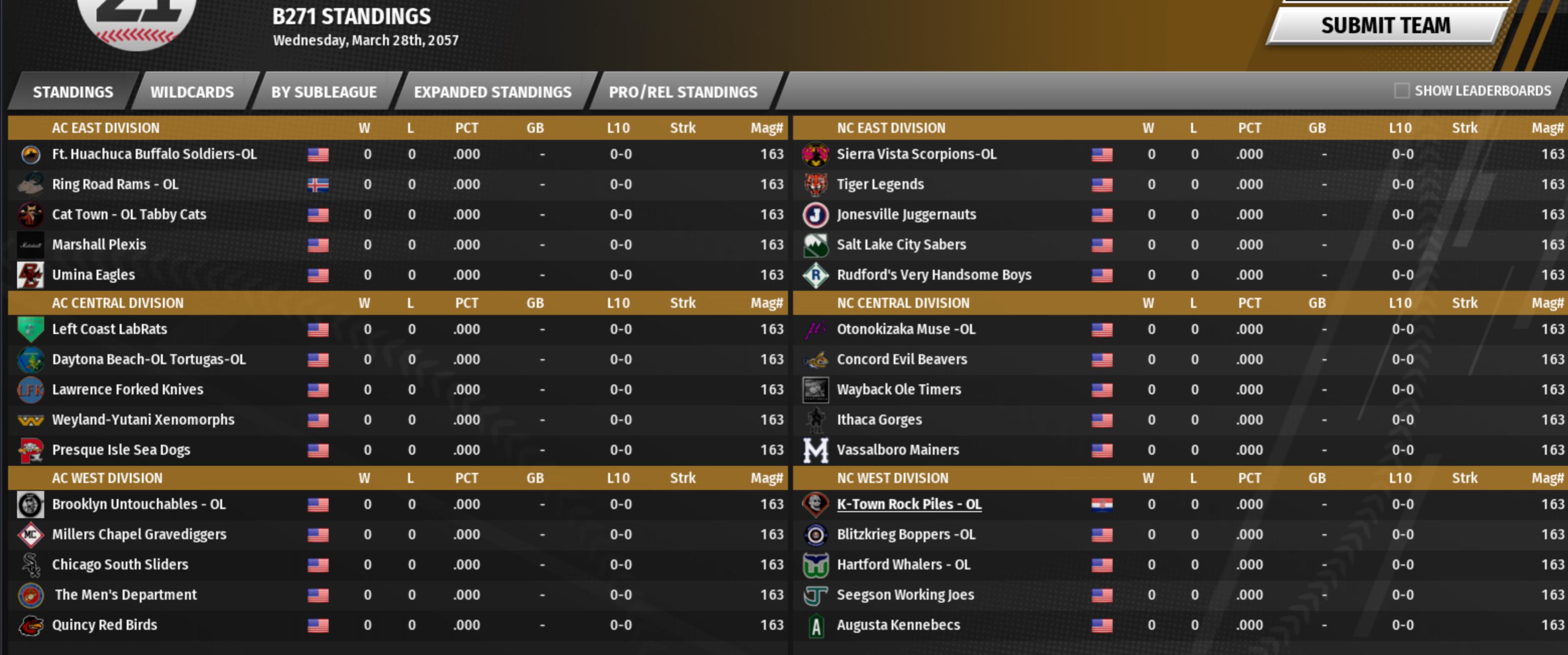 D356 - Palolo in playoffs, Highland and Kansas to gold G340 - no teams in playoffs, South Side, Flatbush to silver G320 - Shinbone, Hidden Valley, Cary, Weston Pointe in playoffs B233 - Shangri-La, Blitzkrieg, Daytona Deach in playoffs, Vlora to iron I285 - Fort Huachuca in playoffs, no relegations Silver was covered elsewhere, but for convenience sake the relegations are: Hartford, Ewa Beach, Brooklyn Untouchables to bronze We should be able to award six crowns this week since all leagues have at least four teams with two or more getting 10 OL games. So far, three have been awarded. Only one final standings table has been posted, S331, so please help out if you can. Last edited by Stanley Kuppchaser; 12-06-2020 at 09:45 AM. |