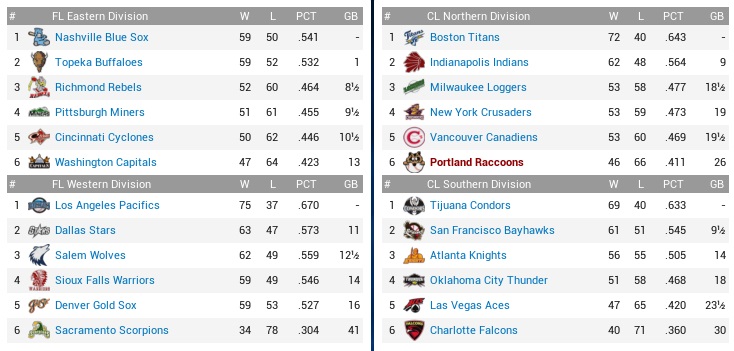 Raccoons (61-88) vs. Condors (98-51) – September 20-22, 2032