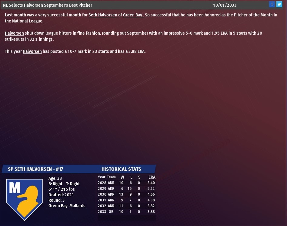 MBL news: Oct. 1 -- Players and Pitchers of the Month for September