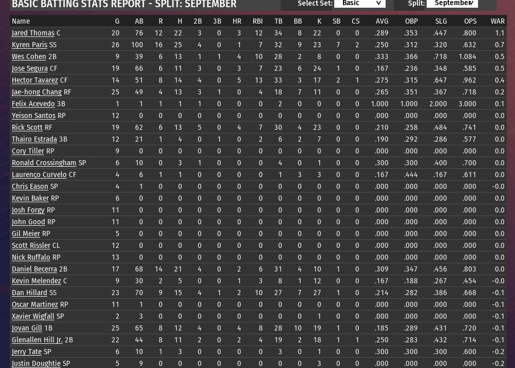Walkers news: Oct. 1 -- Team statistics for September