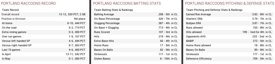 Raccoons (13-12) @ Loggers (14-10) – May 2-5, 2033