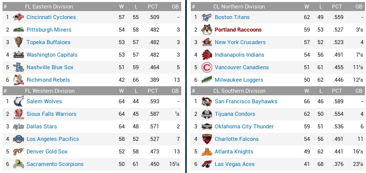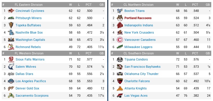 Raccoons (75-62) vs. Titans (75-61) – September 6-8, 2033
