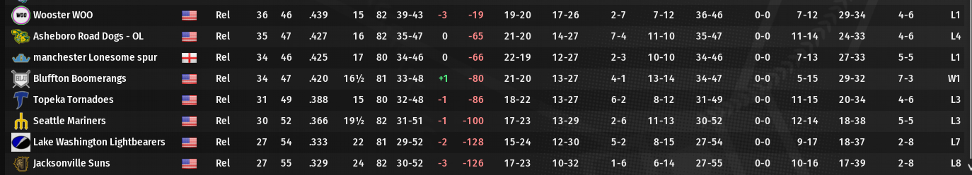 Victory lap in September for Laramie as they push to maintain the top seed overall in the league to go along with an OL crown. Overall Laramie and Waffletown hold division leads, and Hidden Valley holds a wild card heading down the stretch. |