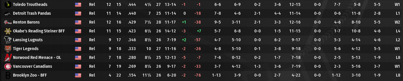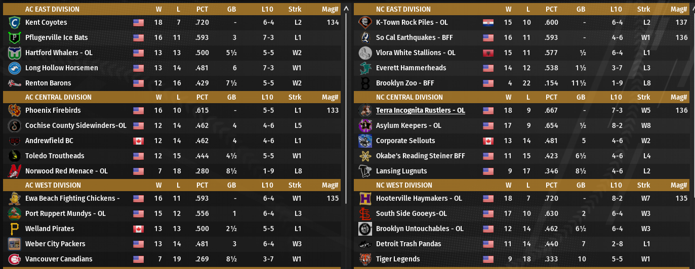 Since all five of the OL teams are in the same league (AC), there will definitely be a crowned winner this week with every team getting well beyond the minimum number of games. Here is the setup: