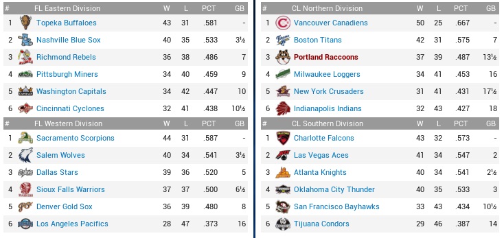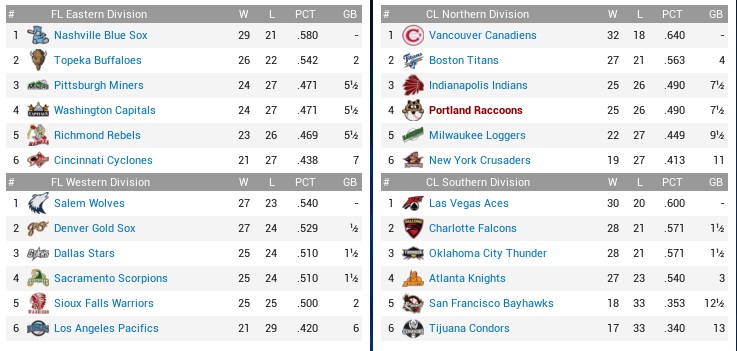 Raccoons (40-43) vs. Loggers (38-44) – July 2-5, 2040