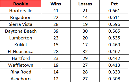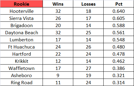 Heading into the final month, Hooterville remains atop the standings, looking to claim their first Rookie league title. |