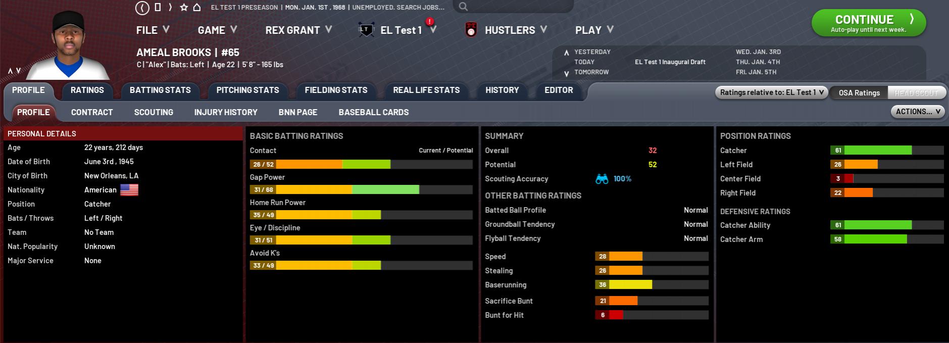 MLEs hold this up with just a slight markdown, and I settled at 110% for his POT. I have ignored his early phase as a pitcher. Imports into the game as Chester Brooks, but SH has that as his nickname.