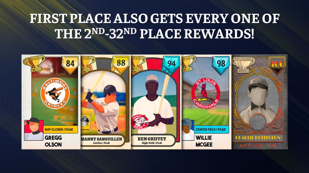 Daily + Weekly Perfect Draft: Triple Perfect Bronze Floor (modern run environment, DH) Daily Traditional: Bronze Floor/Silver Ceiling 1776 Cap (modern run environment, with DH) Weekly Traditional: Deadball to Golden Era Open (Cards up until 1960 eligible, modern run environment, NO DH) Participants in the third PTCS are determined by the top 128 teams from the last four cumulative weeks (ending Sunday, Oct. 2) in each of the four formats. Here are the prizes for 32nd-2nd place in this PTCS: