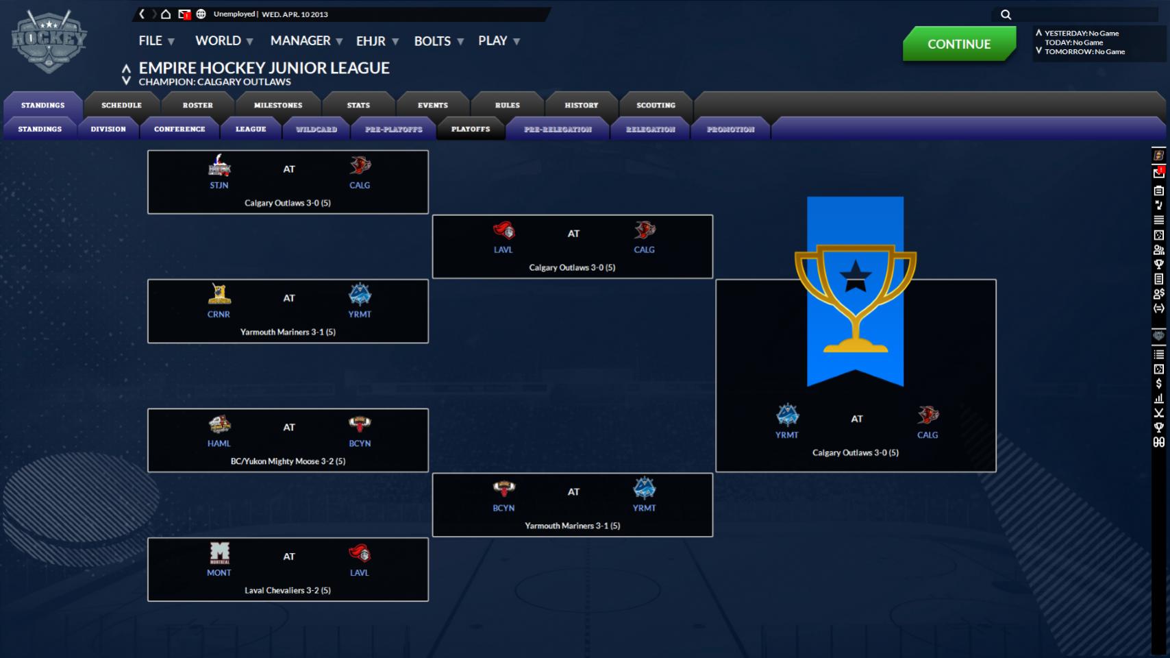 It came to my attention how young the Rochester Jets were and thought it should be recognized that such a young squad has made it to the semis Rochester eliminated Omaha in the first round. Lake Ontario and Vancouver is a dynamite match-up in the Royal League. Both semis is made up of 3rd and 4th seeds, all 1rst and 2nd are out.