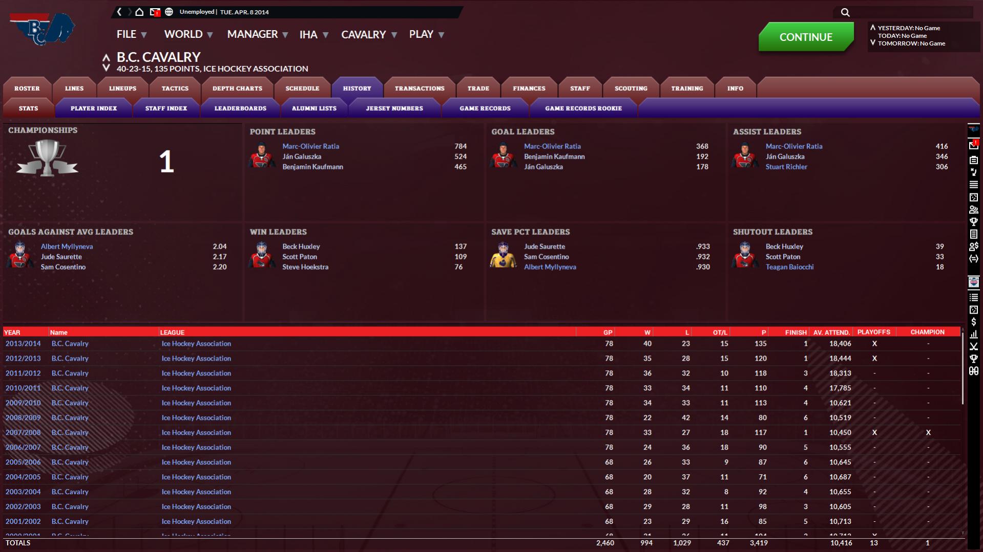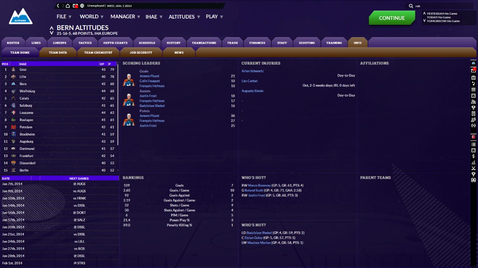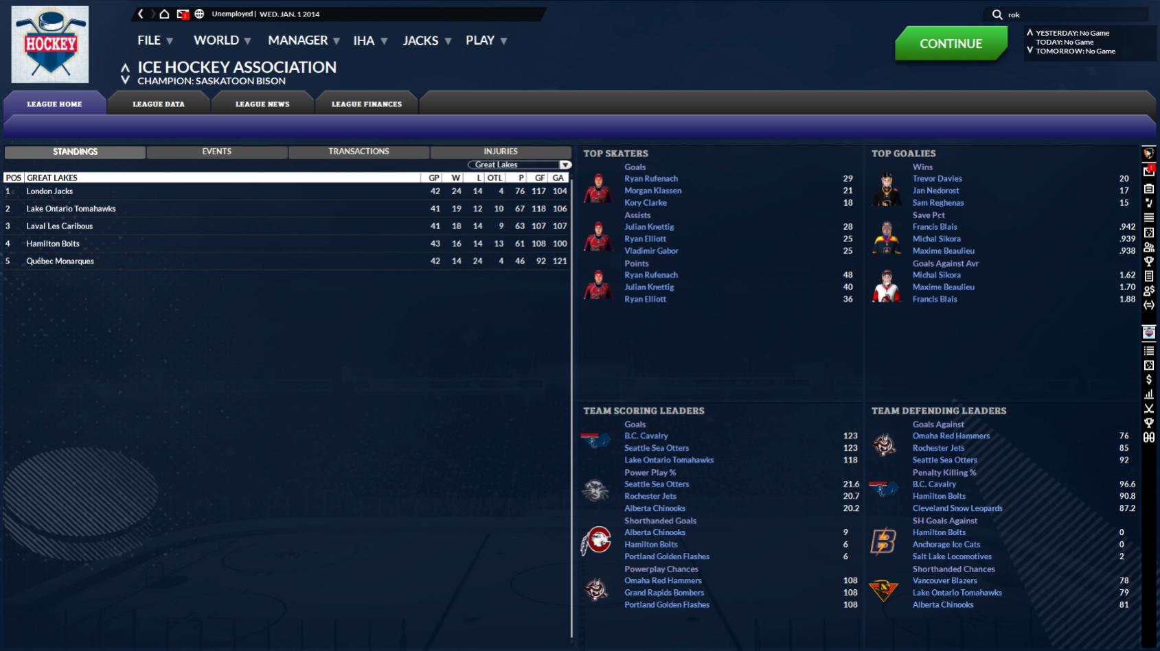 Point Leaders in the IHA (Jan 1, 2014)