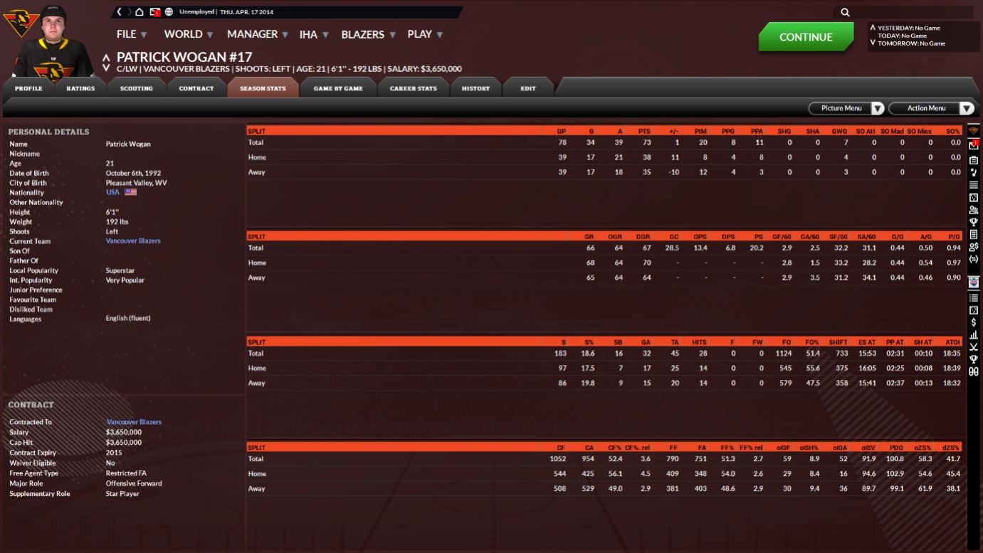 HA Canadian Playoff Team Stats (sorted by Game Rating)