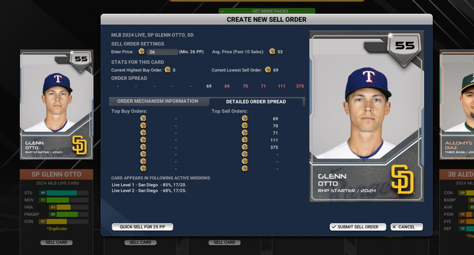I have some some of the new Iron Live cards that have a quciksell value of 25pp and a minimum sell price of 26