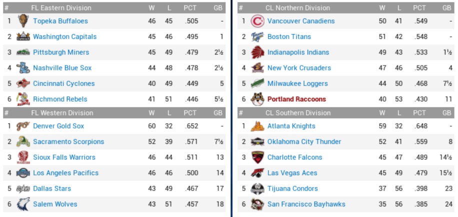 Raccoons (26-36) @ Pacifics (32-30) – June 10-12, 2052