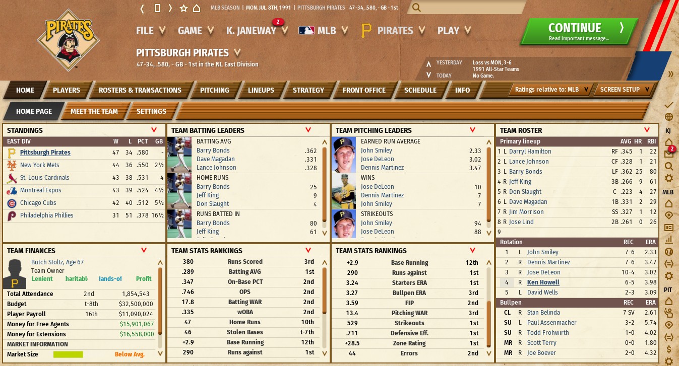By that time the farm will have not produced for several years so the roster should be full of near minimum wage players. There might be enough money left to give Bonds half the payroll! Dennis Martinez has signed relatively cheaply for years and now suddenly wants big money. OTOH, he hasn't performed as well as I expected until recently either. Anyway unless he drops his demand a lot he's gone next year. Last edited by Brad K; 02-27-2022 at 04:15 PM. |