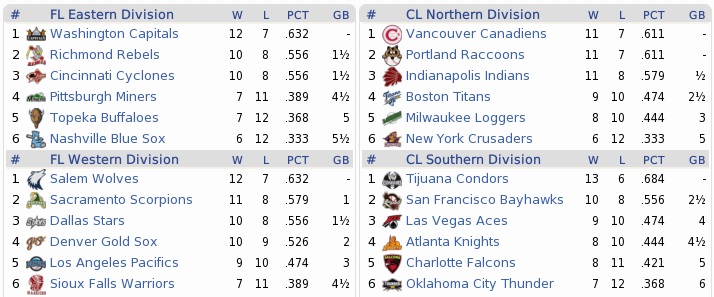 Portland Raccoons (99-63) vs. Washington Capitals (99-63) The Raccoons will make their fourth World Series appearance. This is actually a record, with the Blue Sox, Capitals, and Canadiens all topping out at three appearances. Of course, the Coons are 0-3 so far after falling to the Stars in 1983, the Wolves in 1989, and the Capitals in 1991. The only other team with multiple appearances to be oh-for are the Condors (0-2). The Raccoons had a hard time in the CLCS to get the offense going, totaling eight runs in the first four games, with only gritty pitching by Jason Turner, Scott Wade, and the bullpen holding them in the series, plus key hits by Ben O’Morrissey and Vern Kinnear. Their offense could be improved, since Daniel Hall was added to the playoff roster in place of Marihito Ohayashi, but the earliest “Dan The Man”, as he is called in Portland, will be able to attack in the series, seems to be game 3 in Washington. Raccoons pitching was remarkable overall, holding an offense that steamed to 888 runs in the regular season to 3.14 R/G in the CLCS. If they can do the same to the Capitals, they ought to be fine. The Capitals dropped 14 games compared to last year, when they won an ABL record 113. F.e. 1991 Pitcher of the Year Archie Dye (26-3, 2.24 ERA) had an in comparison rather pedestrian 17-12, 3.61 ERA season, which is about the worst mark in their strong rotation. You can’t say many negative things about the bullpen, although their relievers on average tend to be a bit worse than the Raccoons’. They especially lack a left-handed shutdown guy like the Coons have in Ken Burnett. In fact, they only have one left-handed reliever in Armando Dávila (5-2, 3.59 ERA in 44 G). Combined with three right-handed starters (Dye, Parker Montgomery, and Ethan Thomas) enticing the Raccoons to load their lineup with lefties, especially in games 1 and 2 with the right-handed Hall sidelined, this could turn out to be a significant strategic disadvantage. The Capitals’ offense doesn’t have to hide form nobody. Their 815 runs scored led the Federal League, they have five double-digit dinger hitters for home run-friendly Raccoons Ballpark, and apart from starting shortstop Nuno Andresen can field a complete lineup of .275+ batters. Especially fearsome may be the left-handers C Gabriel Rivera (.315, 21 HR, 94 RBI – something that POR David Vinson was before this season) and LF/RF Darren Allison (.322, 23 HR, 104 RBI). Holding them to 3-ish runs per game won’t be easy for the Raccoons, but utterly necessary. The Capitals have no injuries to significant players and can field their best suit as opposed to the Raccoons, who miss outfielder Neil Reece and his slugging. Defensively, both teams have a weak spot on the right side of the infield. It is a largely immobile 1B Tetsu Osanai for the Raccoons, and a venerable Hector Atilano at second base for the Capitals, even if Atilano’s only fault may be that he is 41 years old. Last year, the Raccoons saw no land against the Capitals and lost in five games. The teams could be much closer this year. Most everything depends on the Raccoons’ rotation and how well they can handle the opposing offense. It seems hardly likely that the series will be decided in less than six games this time around and might go the distance. The Capitals seem to be a wee bit ahead of the Raccoons overall, and if it is only because Neil Reece hurt his hamstring on the final day of the season. 1992 WORLD SERIES Portland Raccoons (99-63) vs. Washington Capitals (99-63) Game 1 – Scott Wade (11-5, 2.76 ERA) vs. Ramón Ortíz (16-9, 3.55 ERA) Ortíz was the only left-hander the Capitals would offer to us, but he was certainly impressive, his ERA not telling the truth as much as his 163 strikeouts. Unfortunately, without Reece and Hall our lineup tilted heavily to the left side, no matter what I did. Unless I wanted to play Morales, I had to field four left-handers. In the end, Higgins would bat leadoff against Ortíz, followed by Salazar, O’Morrissey, Kinnear, Osanai, Quinn, Johnston, and Vinson. If there was one thing his manager didn’t like about catcher Gabriel Rivera, it was his arm and error proneness. When Matt Higgins got on to start the bottom 1st, he immediately started to explore his chances and went on Ortíz’ second pitch to Salazar. Rivera’s throw was nowhere near second base and fell into shallow center, and Higgins dashed to third base. He would score on O’Morrissey’s groundout, and the Coons were up 1-0. Attention shifted to Scott Wade and how he handled the Capitals’ lineup now, and he didn’t do too bad. Nobody reached the first time through, and a leaping grab by O’Morrissey in the fourth made sure that the Capitals’ box score remained empty. The top 5th then saw Darren Allison and Gabriel Rivera lead off with singles into shallow right. The Capitals were far from dead. Hector Atilano came up clutch with an RBI double, tying the game. With another double by Yoshihito Ito, the Capitals scored three in the inning to take a 3-1 lead. So much for dominance by starting pitching. The Raccoons struggled to get on base against Ortíz in these innings, until Salazar led off with a single past 1B Fred Rodgers in the sixth. O’Morrissey doubled to right center to put the tying runs into scoring position. Ortíz’ cautious approach to Vern Kinnear resulted in a bases-loading walk with nobody out. The best Tetsu Osanai could manage was a sac fly (god forbid him having a clutch hit), and Quinn in his uselessness struck out. It was on Glenn Johnston to tie the game, and he succeeded with a single to center, scoring O-Mo, 3-3. Vinson grounded out. Wade and Ortíz came up to bat in the bottom 7th and top 8th, respectively, and neither team pinch-hit for them. There was still some trust in these guys despite minor hiccups. Through eight, Wade had pitched seven perfect innings and a really, really, really rotten one. In the bottom 8th, the Coons we