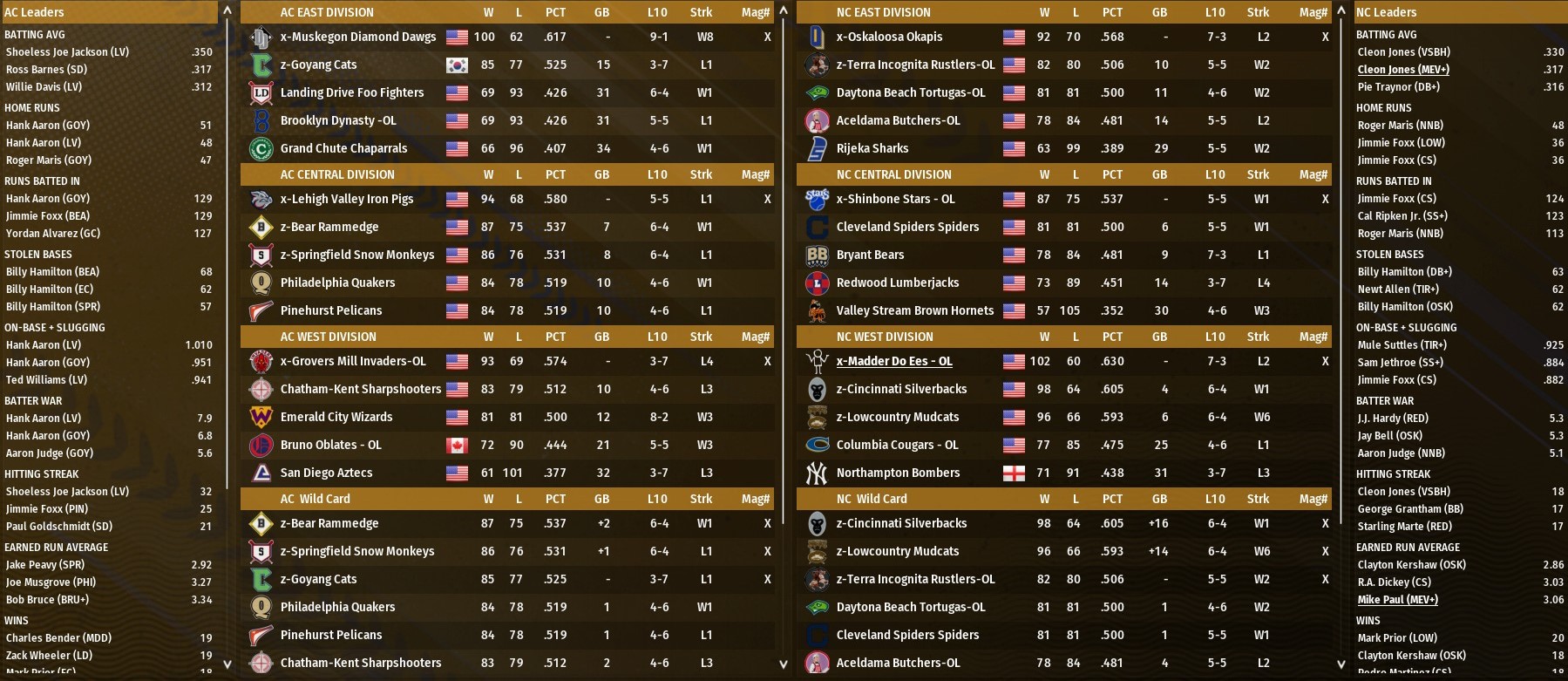 Belo Horizonte maintains a slight lead over Holy City. The Hurricanes have completed their OL play for the season, while the Peasants have 9 games remaining, all against soon-to-be-relegated Fort Davis. Long Beach is also within striking distance of the top, but have the much tougher remaining schedule, with 7 left against Coney Island.
