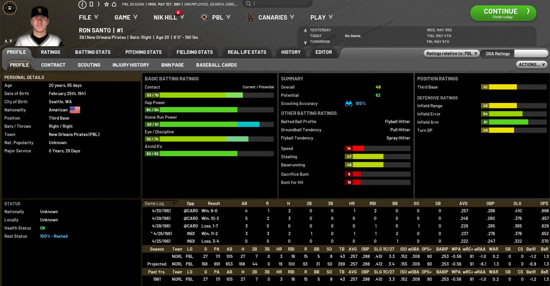 Northwest League Aaron Judge (New York): .526 / 2 HR / 3 RBI Southeast League Ron Santo (New Orleans): .421 / 2 HR / 4 RBI