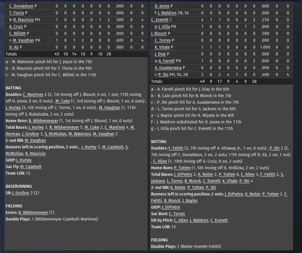 Tied 8-8, Mike Vaughan drove in two runs with a pinch-hit double in the top of the 11th inning and St. Louis held on to defeat Quad City 10-9 at Fenway Park (1976). Rookie Carlos Martines had led off the inning with a double off Thunder relief pitcher Dennis Jones. Mark Herman then drew a walk before Jones struck out Casebolt. Salvador Rubalcaba then relieved Jones. Rubalcaba got Savion McMullan to fly out for the second out. But Vaughan lined a 1-2 pitch into left center to put the River Walkers in front. QC almost won the game in the bottom of the ninth. Reliever Darren Xu allowed three of the first four batters he faced to reach base. The third batter Pang Shi doubled to make it 10-9. After an intentional walk to J.P DiPietro to load the bases. Rubalcaba grounded into a fielder's choice with Jim Waldron being retired at the plate. Xu then struck out Paul Totten to end it. The Walkers actually jumped out to a 7-0 lead over the first four innings. But the Thunder climbed back into it. A three-run fifth against St. Louis starter Kevin Hrdlicka followed by two more in the sixth made it 7-5. A pinch-hit single from Mark Waterson off Armando Guadarrama in the seventh put the Walkers in front 8-5. Shi drove in three in the bottom half with a two-out double off Curt Donaldson to tie it 8-8. Hrdlicka went 5.2 innings, allowing five runs on nine hits. He struck out five and walked one. Josh Joyce got the final out of the sixth for St. Louis. Aaron Attaway Jr. started the seventh, recording two outs and being charged with the three runs that came on the double off Donaldson. Tom Floria worked a scoreless eighth. Antonio Cruiz handled the ninth and got the first two outs of the eighth. The win went to Chris Willett (1-0), who retired the only batter he faced to finish the 10th. Xu earned his first save in the 11th. Last edited by rink23; 09-13-2022 at 05:33 AM. |