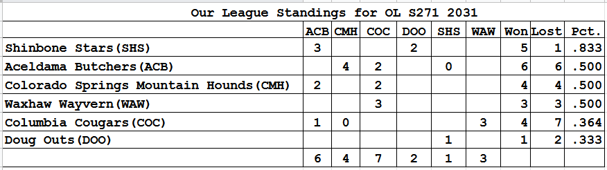 Judge Smails considering raising ticket prices to Bushwood games, as they go a perfect 6-0 in their first OL games. All that stands between them and an undefeated OL run is a 4 game set with Waffletown (second to last series of the season). |